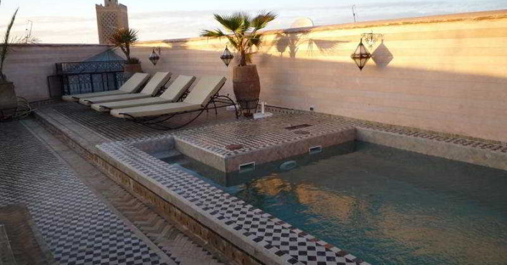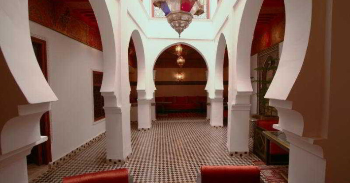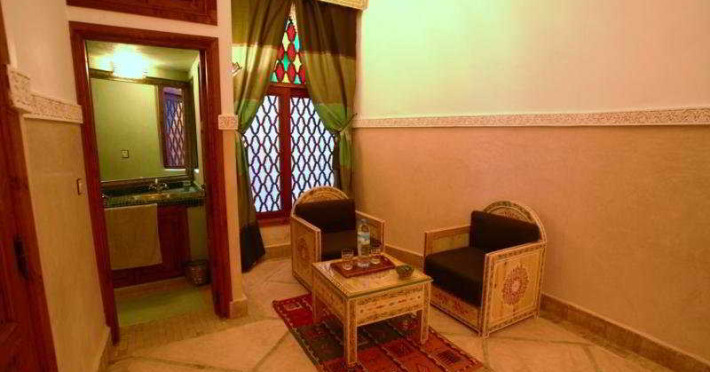 There are 5 rooms at this charming guest house, which is dominated by an intimacy created by the camaïeu of beige and chestnut and its splendid painted ceilings. Guests are welcomed into a lobby with 24-hour reception and check-out services. A TV lounge and a dining room are also on the premises. Two Moroccan living rooms face into the patio which features a fountain decorated with a Zellige terra cotta tiled mural. The courtyard also has a removable transparent cover. Furthermore, for guests comfort the guesthouse offers reversible air-conditioning, free WLAN Internet access, a hotel safe, a laundry service and parking facilities (an extra charge applies for the latter).There are 5 rooms at this charming guest house, which is dominated by an intimacy created by the camaïeu of beige and chestnut and its splendid painted ceilings. Guests are welcomed into a lobby with 24-hour reception and check-out services. A TV lounge and a dining room are also on the premises. Two Moroccan living rooms face into the patio which features a fountain decorated with a Zellige terra cotta tiled mural. The courtyard also has a removable transparent cover. Furthermore, for guests comfort the guesthouse offers reversible air-conditioning, free WLAN Internet access, a hotel safe, a laundry service and parking facilities (an extra charge applies for the latter).