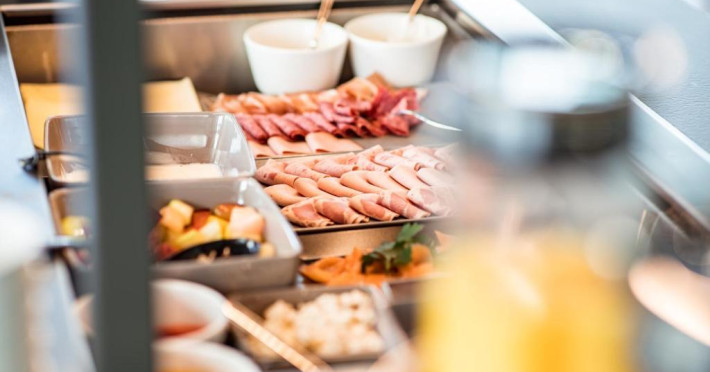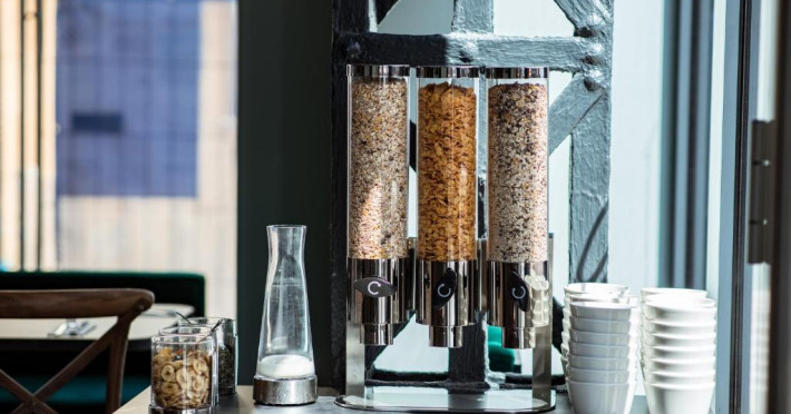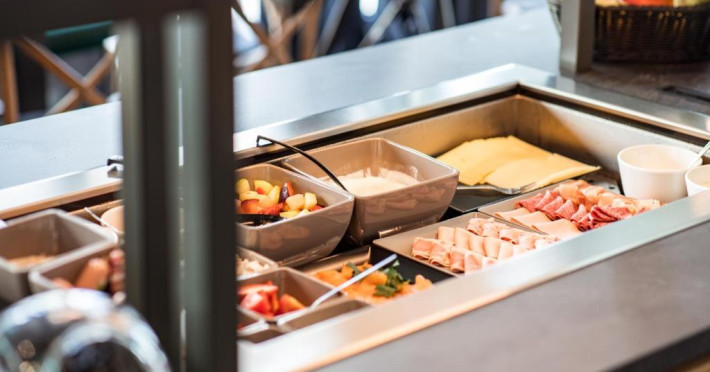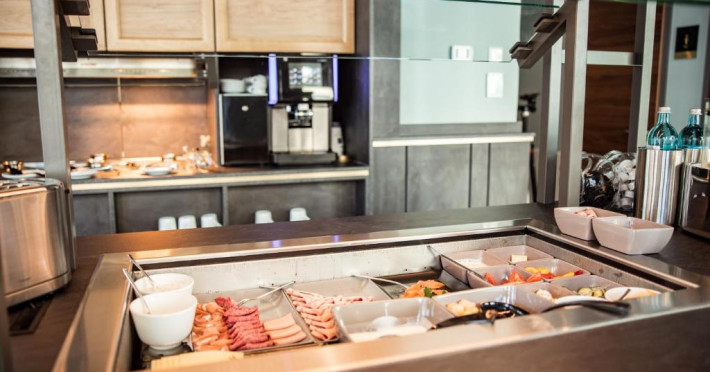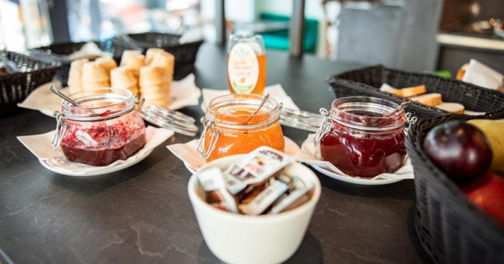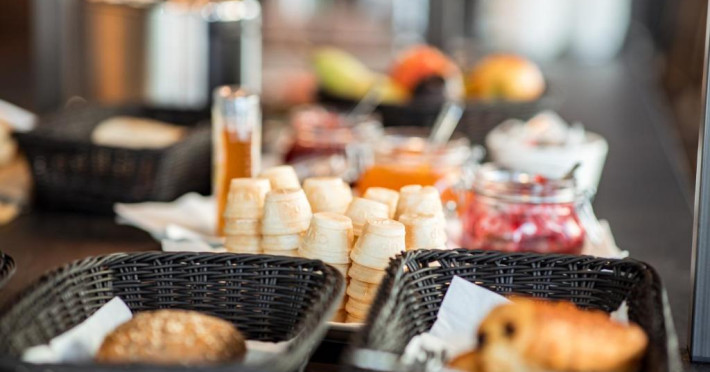 Hotelul oferă in fiecare dimineață un mic dejun. Sala de mic dejun luminoasă este prevăzută cu mobilier clasic, din lemn.