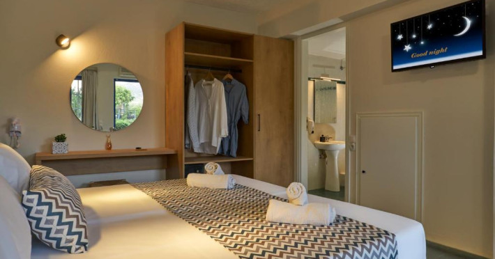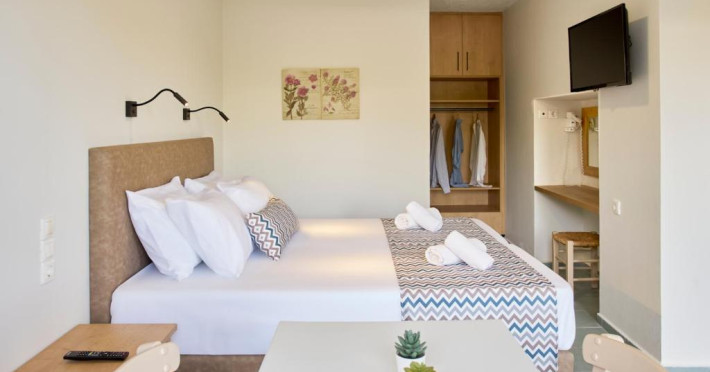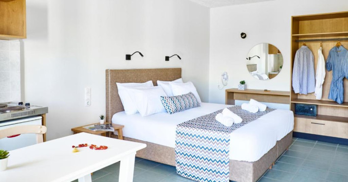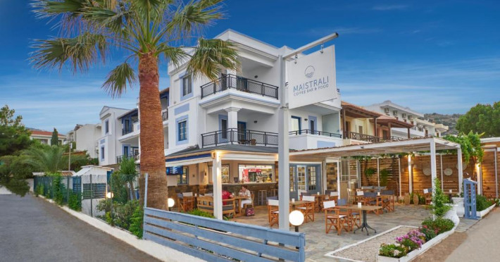 Camerele confortabile de la Maistrali Apartments au pardoseală de gresie/ marmură, aer condiționat, Tv cu canale prin satelit și seif. Fiecare cameră dispune de mașină pentru preparare cafea sau ceai și fierbător Unele camere au balcon cu vedere la mare. În camere există baie cu cadă sau duș ce are în dotare foehn și articole de toaletă gratuite. Oaspeții au acces gratuit la serviciul Wi-fi în camere. În fiecare unitate de cazare există bucătărie utilată cu frigider, plită de gătit și ustensile de bucătărie. De asemenea, sunt disponibile o zonă de luat masa și un cuptor cu microunde. Proprietatea oferă camere pentru familie cu o suprafață mai mare și un număr mai mare de paturi față de cele standard. Se pot rezerva de asemenea camere pentru nefumători.