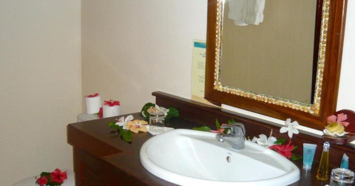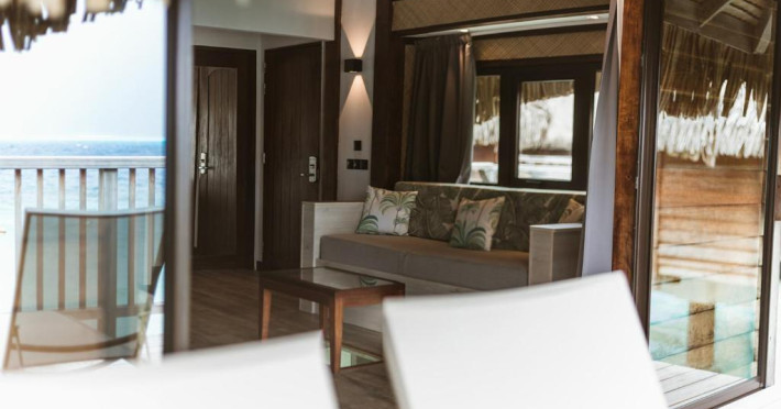 Toate camerele si bungalourile includ aer conditionat, TV prin satelit si minibar. Bungalourile amplasate deasupra apei au o masă de sticlă, permitand oaspetilor să vadă pestii dedesubt.