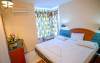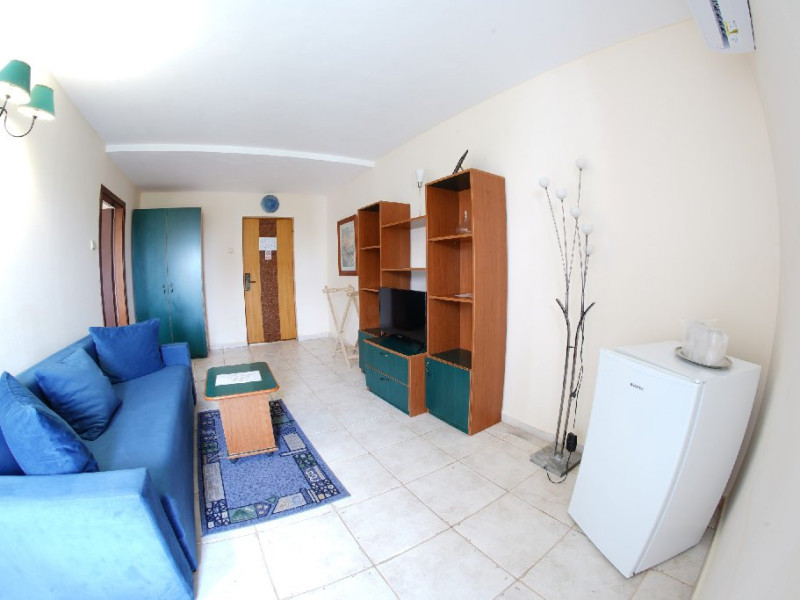 Este compus din 2 camere, un dormitor cu pat matrimonial si un living spatios cu canapea extensibila in care pot dormi 2 copii mai mici de 0 - 13.99 ani sau un adult si un copil. Apartamentul dispune de frigider. Toate apartamentele sunt situate cate unul pe fiecare etaj si cele de la etajul 3 in sus au vedere partial spre mare.