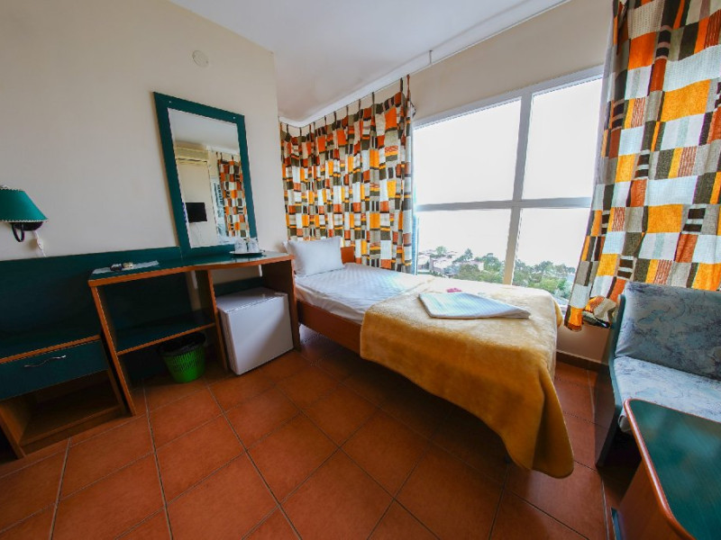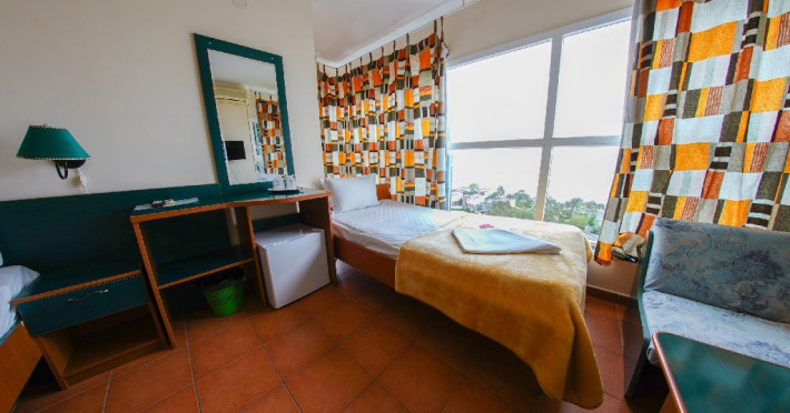 Camera single (18 mp) Capacitatea maxima: 1 adult + 1 copil 0- 7.99 ani. Diferenta dintre camera dubla si cea single este doar de masa, camera fiind aceeasi.