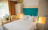 2. Camera dubl cu pat suplimentar a cuprinde un spatiu deschis cu o suprafata de 20 mp, zon pentru dormit cu pat matrimonial sau twin si un pat suplimentar, baie cu dus si alocarea se va face in functie de disponibilitatea hotelului.