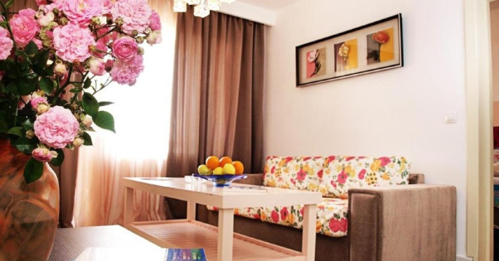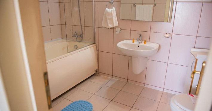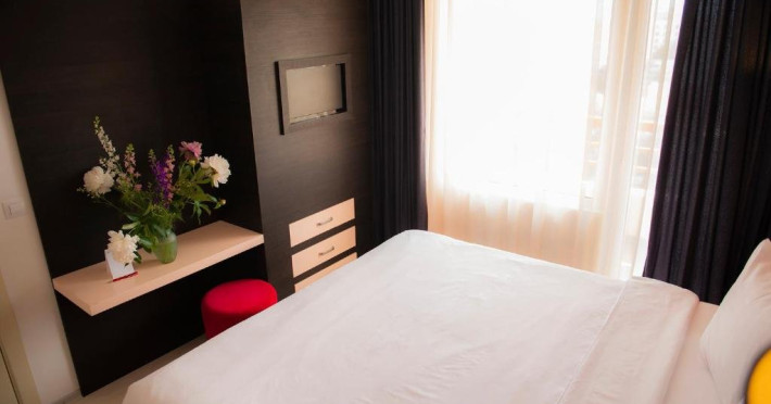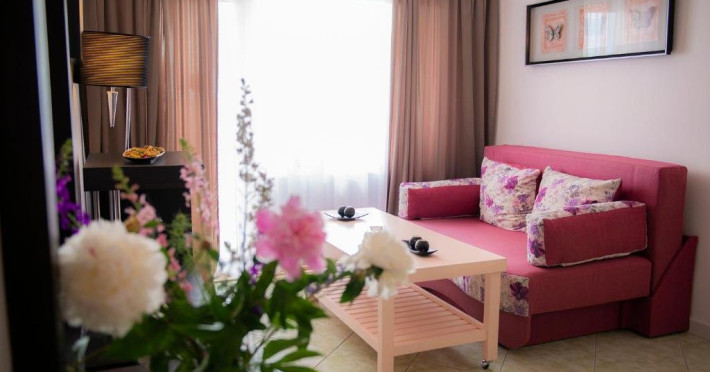 4. Apartament cu 2 camere - cuprinde un spatiu generos de 40 mp, format dintr-un living cu canapea modular extensibil si un dormitor cu pat matrimonial, baie cu cad si vedere lateral ctre mare si lacul Siutghiol. Apartamentul dispune de chicinet dotat cu plit electric, can electric, espressor si capsule de cafea, chiuvet, frigider, vesel si tacamuri.