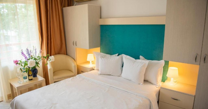 Parcare auto in limita locurilor disponibile, Internet WI-FI in complex, Pstrarea obiectelor de valoare, Depozitarea si pstrarea bagajelor, Patut bebelus la cerere, Muzic live si program pentru copii (programul artistic va incepe de la 1 iulie si pana la 1 septembrie), Dou locuri de joac situate atat in interiorul hotelului, cat si in exterior, Acces la terenul de sport (echipamentele se asigur in limita articolelor sportive disponibile, iar utilizarea terenului se face cu prezentarea la receptie), Piscin exterioar incalzita* pentru adulti cu sezlong gratuit in limita disponibilului, Piscin exterioar incalzita cu tobogan pentru copii, Umbrele,