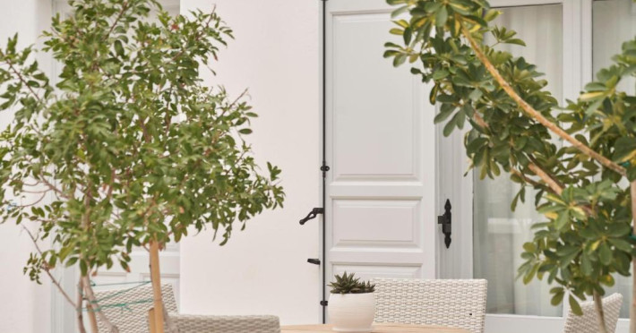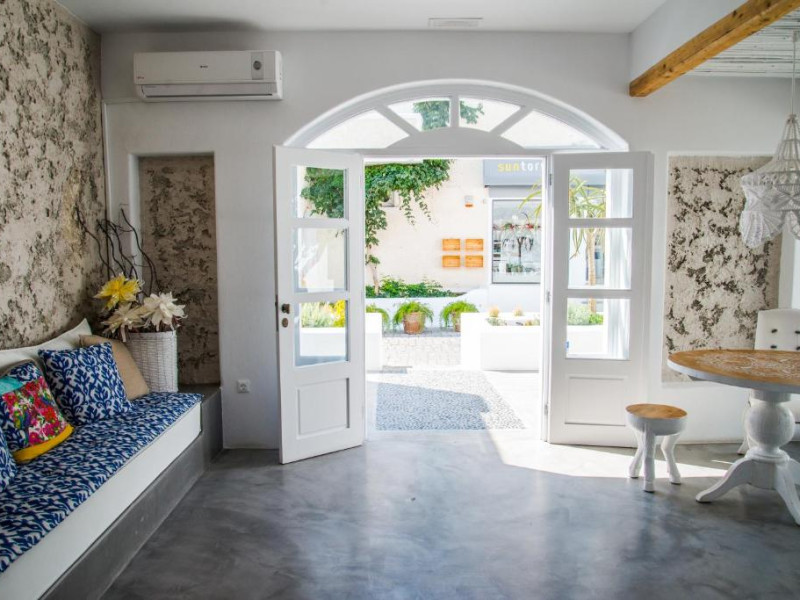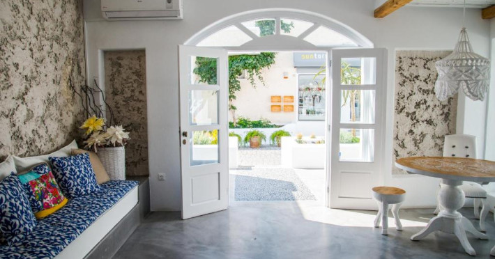 Cu acoperisuri arcuite si pereti văruiti in alb, apartamentele primitoare includ o zonă de relaxare cu o canapea si o chicinetă modernă, cu masă. In intreaga proprietate este furnizat WiFi gratuit.