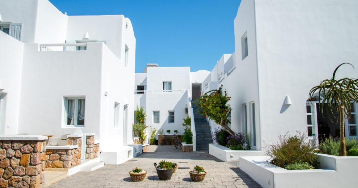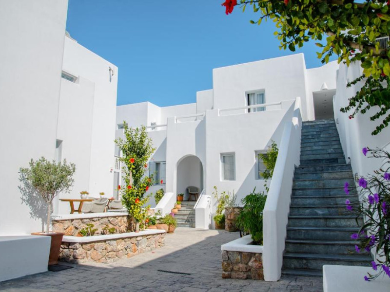 Cu vedere la plaja cu pietris negru din Kamari, acest hotel fermecător hotel de apartamente oferă camere cu vedere la mare sau grădină. Şezlonguri si umbrele sunt disponibile pe plajă, contra cost.