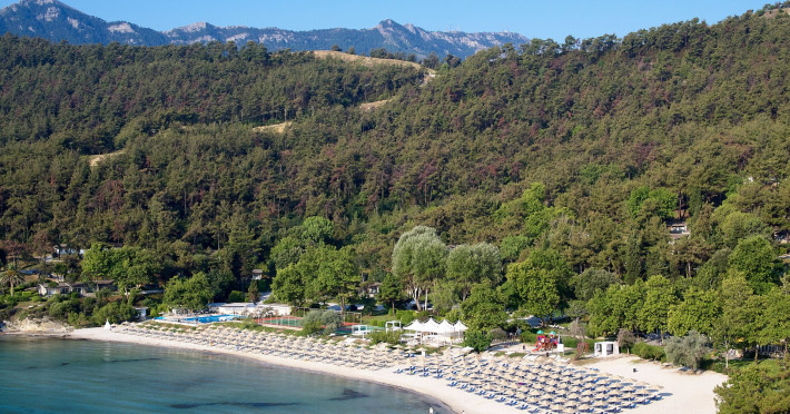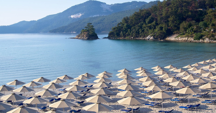 The 30 acre four star beach resort is built on a pine covered hillside fronting the magnificent white sandy beach of Makryammos. The village of Thassos lies just 2km away. The resort consist of a main building and 206 rooms all built in a low rise bungalow style. The bungalows have local traditional architectural elements and have balconies that face the Aegean sea. Makryammos offer superb hospitality, fine Greek cuisine and the opportunity to relax on a world famous beach with emerald waters and fine sand, or walk along beautiful gardens enjoying the rise of the summer moon over the sea. The main building houses the reception, lobby area, with free wi-fi and sat TV, the main restaurant âDioskouriâ and the bar âNymphesâ. Having settled on your private beach umbrella, you may have a swim on the sea, or use our sweet water pool, you may enjoy a cocktail at four different bars, or try out Mediterranean cuisine at our beach front tavern. You may also play tennis, beach volley or basketball. The hotel has parking areas for guestsâ cars, so you can park your vehicle in one of the designated areas located nearest your bungalow. nbsp;Datorita dinamicitatii domeniului disponibilitatea ofertelor se modifica de la un moment la altul. De aceea ofertele sunt valabile in limita locurilor disponibile. Agentia nu este responsabila pentru eventualele neconcordante care pot aparea intre informatiile privind tarifele si alte detalii din site si informatiile primite in agentie. In aceste cazuri vor avea prioritate, intotdeauna, informatiile primite in agentie.