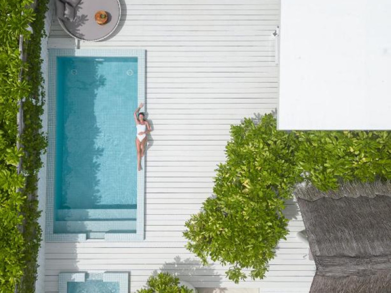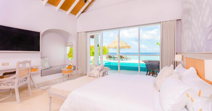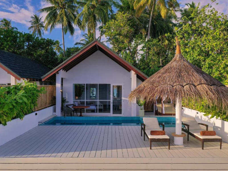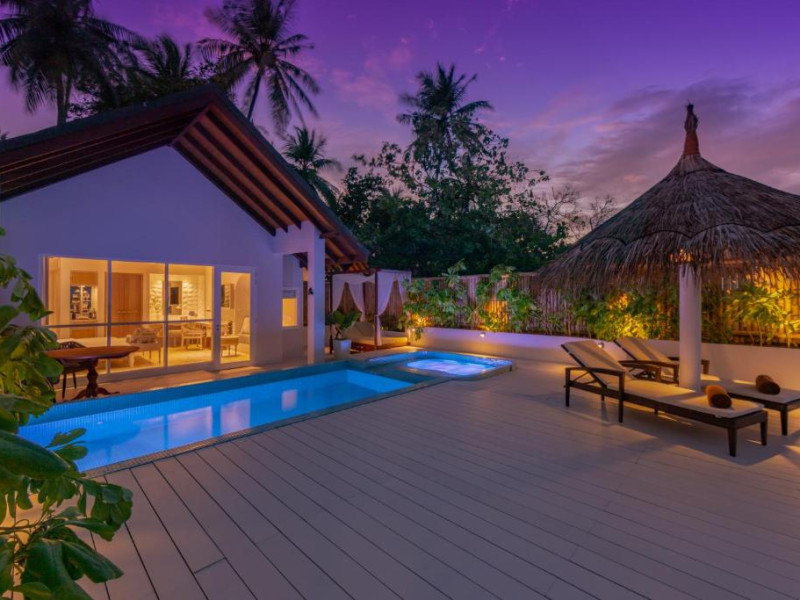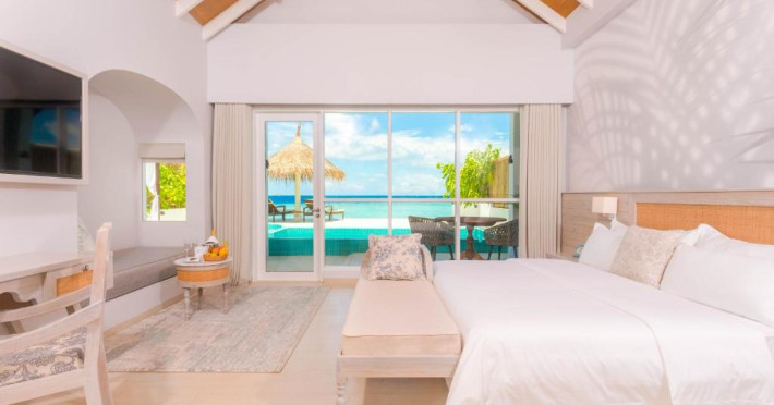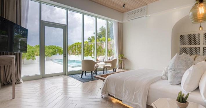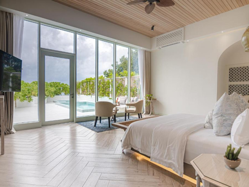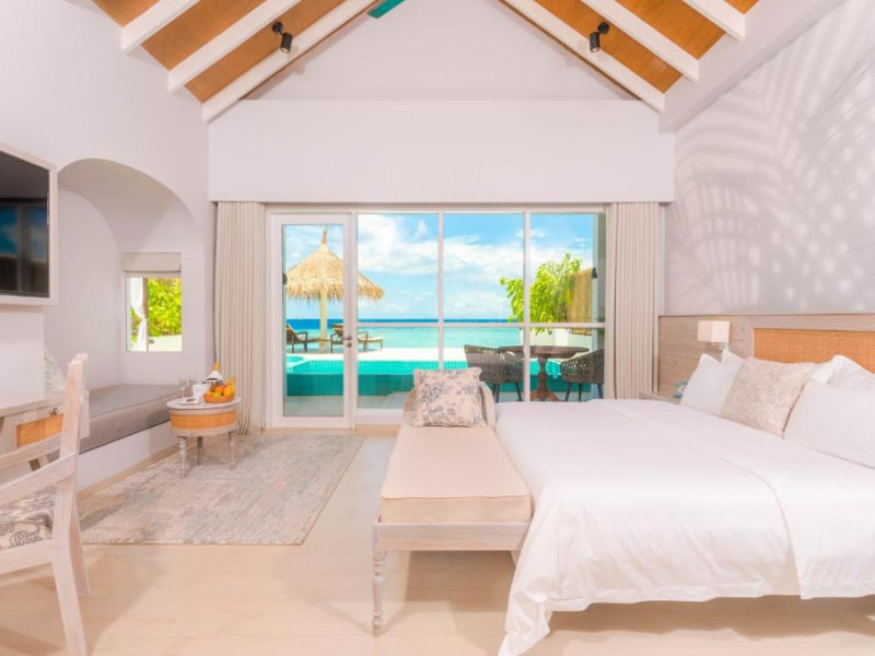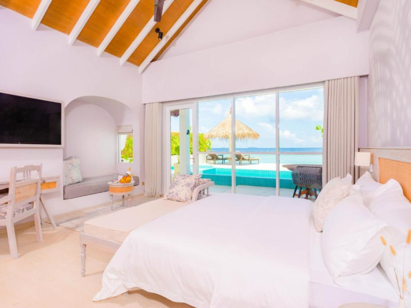 Inspirat de casele tradiționale ale insulelor Maldive și de designul modern opulent, interiorul atent conceput, decorat cu ceramică celadon elegantă și oferind o vedere impresionantă, imbină fiecare aspect pentru a crea un farmec aparte al vilelor Sunrise cu piscină - pe plajă și suitelor Sunset Beach cu piscină.