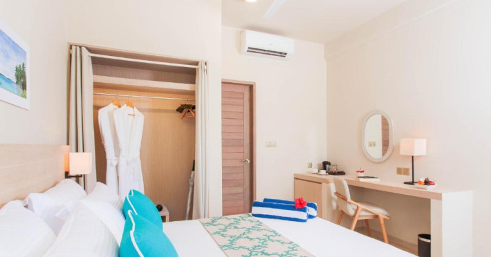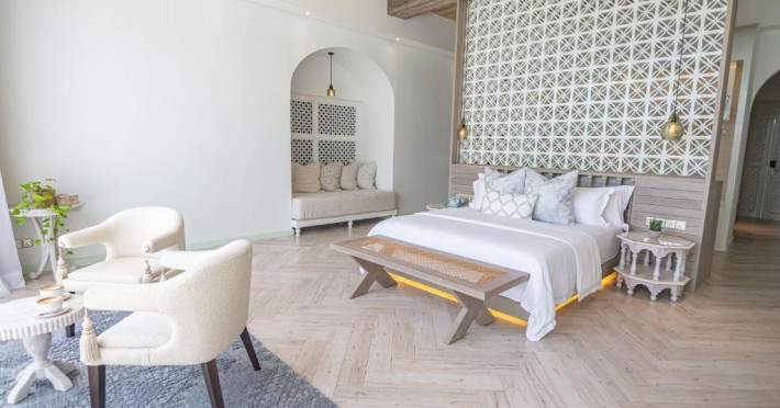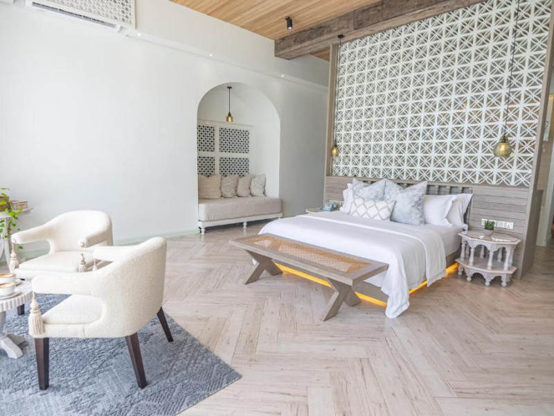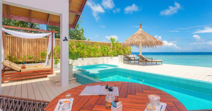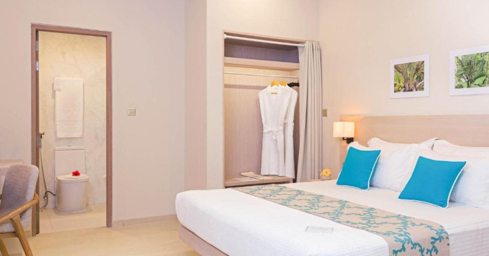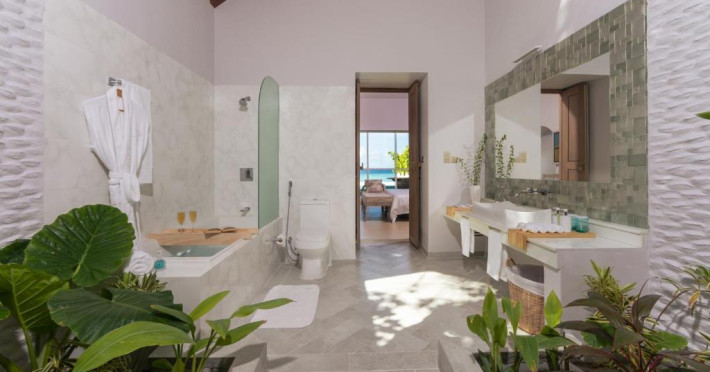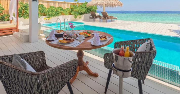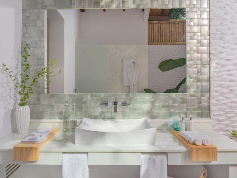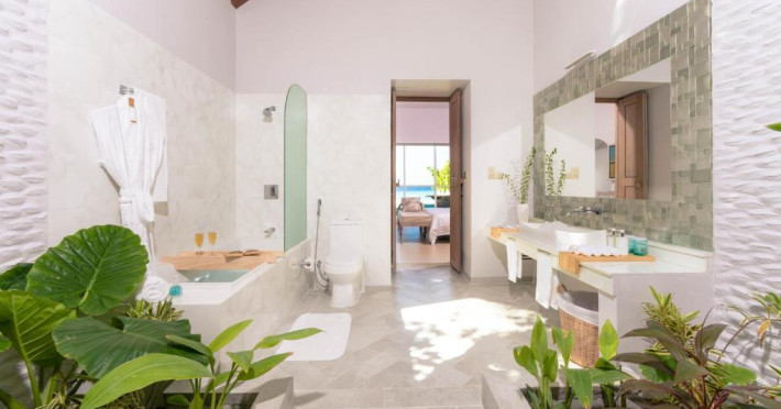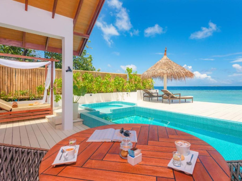 Inspirat de casele tradiționale ale insulelor Maldive și de designul modern opulent, interiorul atent conceput, decorat cu ceramică celadon elegantă și oferind o vedere impresionantă, imbină fiecare aspect pentru a crea un farmec aparte al vilelor Sunrise cu piscină - pe plajă și suitelor Sunset Beach cu piscină.