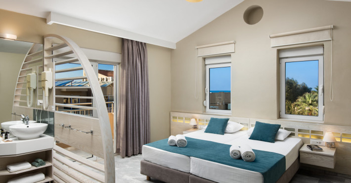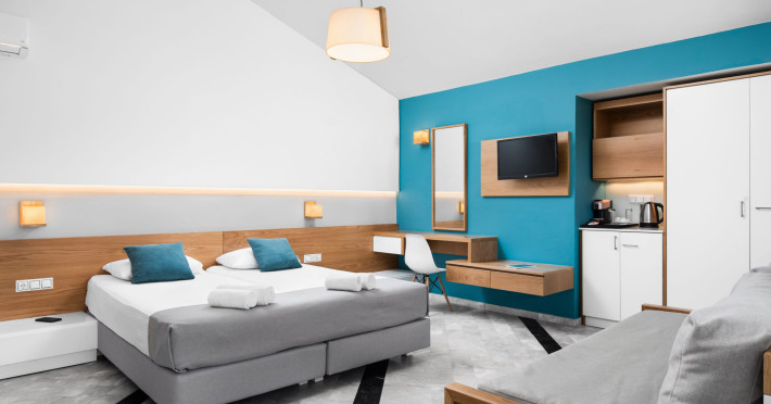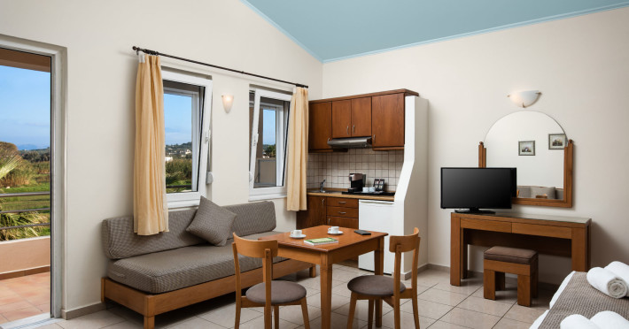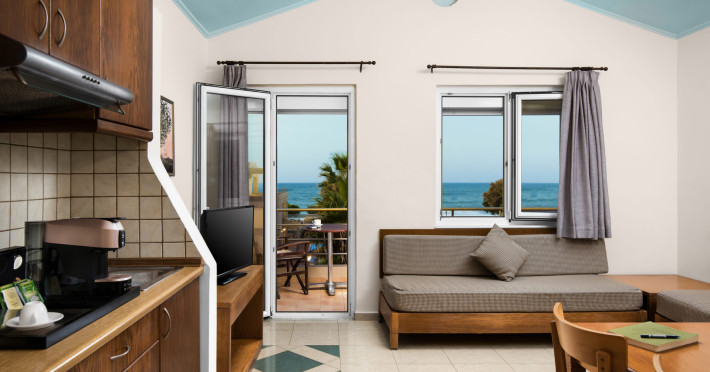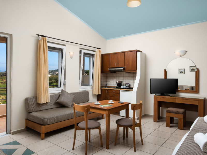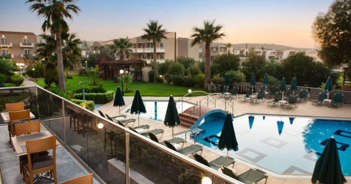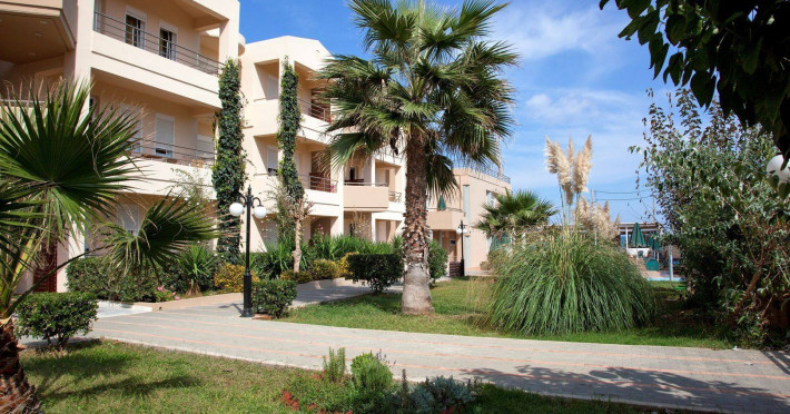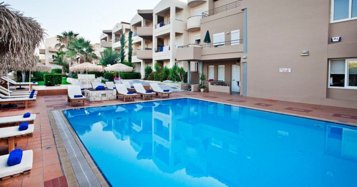 Maleme Mare Beachside Hotel comprises 62 modern, spacious and fully-equipped apartments with 36 studios and 26 suites. All the apartments have a private, furnished balcony or terrace with either sea, mountain, garden or pool view.At the restaurant you will enjoy, among others, dishes from the Cretan diet, the base of the Mediterranean diet which is famous for its health benefits and unique taste. The hotel offers 2 outdoor swimming pools with a pool bar were you can enjoy your drink or snack.Maleme Mare Beachside Hotel is a modern, eco-friendly hotel in a beautiful quiet setting yet only 5 km from the cosmopolitan tourist centre of Platanias.