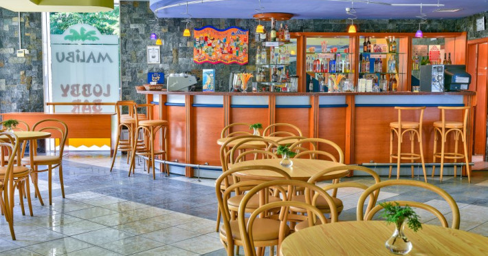 Hotelul Malibu este situat la 80 de metri de plajă, în apropierea străzii comerciale din Albena - o zonă perfectă pentru distracție și recreere, fiind înconjurat de un parc verde luxuriant, cu terenuri de tenis şi piscină în aer liber.