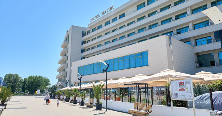 With its beach-front position, a children´s playground and cool modern architecture, this property offers the ideal spot for exploring the surroundings. Free access to WiFi is available in all rooms and common areas. Specifically located at the entrance of Mamaia Resort, on the shore of the Black Sea, this hotel fuzes superb views with a host of impressive facilities. Wellness facilities can be also enjoyed on-site. All air-conditioned rooms at Hotel Malibu are elegantly furnished and have a private bathroom equipped with bathrobes, slippers and toiletries. Sip drinks in the bar and sample traditional and innovative cuisine in the restaurant or on the sunny terrace. The nearest bus station is located 492 feet away and the city center is reachable within 3.1 mi. The aqua park Aqua Magic is 984 feet away from Malibu Hotel. The Museum of History and Constanta Train Station can be reached within 8 to 6.2 mi.When booking more than 5 rooms, different policies and additional supplements may apply. WiFi is available in all areas and is free of charge. Free private parking is available on site (reservation is not possible). Pets are not allowed. Children of all ages are allowed. You havent added any cribs. You havent added any extra beds.Checkin Time: 16:00Checkin End Time: 00:00Checkout End Time: 12:00Hotel important information: PiscinÄ : Closed from Mon, Sep 25, 2023 until Thu, Jun 20, 2024 Bar is closed from Mon, Sep 25, 2023 until Thu, Jun 20, 2024 One child under 12 years stays free of charge when using existing beds in a double room with 2 adult guests. Children sleeping in existing beds must pay supplements (including meals), and prices depend on their age. For more information and confirmation of the extra beds availability, please contact the property directly after booking. Please note that the credit card used for the reservation must belong to one of the guests and must be shown upon check-in. Please note that public parking is limited and possible upon availability. Please note that when booking several rooms, they are allocated upon availability and may not be located on the same floor. Please note that breakfast can be served either continental or as a buffet, depending on the number of guests. Please note that holiday vouchers are not accepted as a payment method.Datorita dinamicitatii domeniului disponibilitatea ofertelor se modifica de la un moment la altul. De aceea ofertele sunt valabile in limita locurilor disponibile. Agentia nu este responsabila pentru eventualele neconcordante care pot aparea intre informatiile privind tarifele si alte detalii din site si informatiile primite in agentie. In aceste cazuri vor avea prioritate, intotdeauna, informatiile primite in agentie.