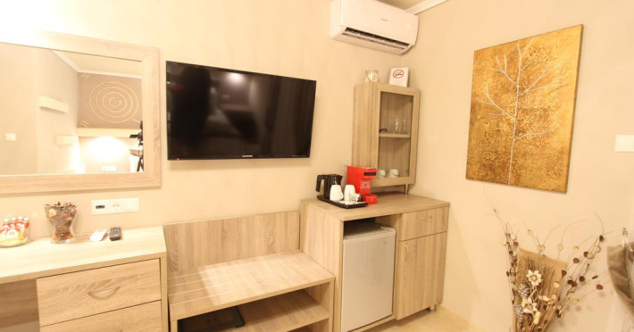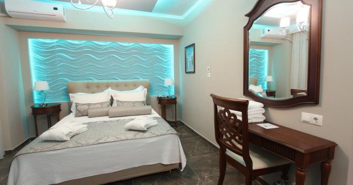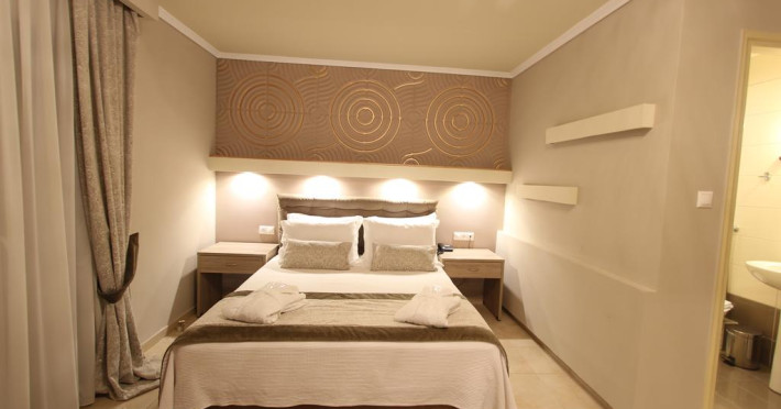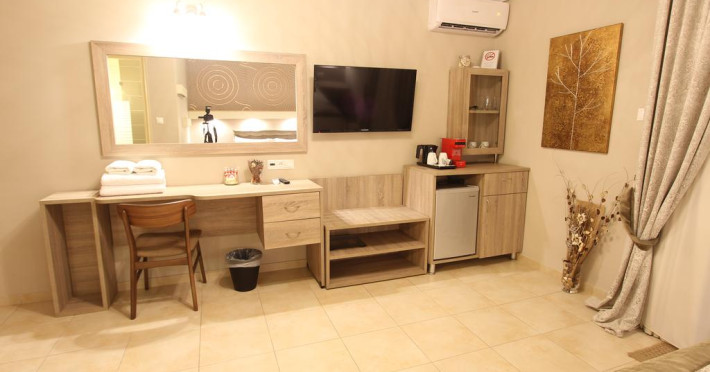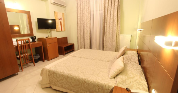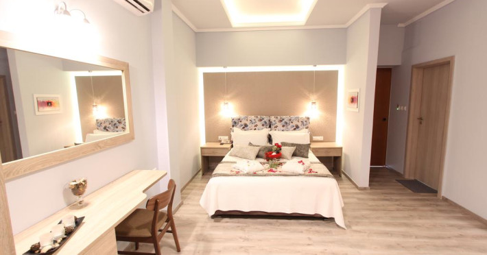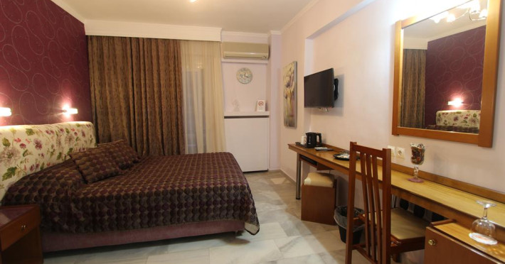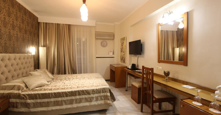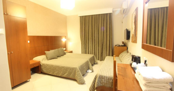 Fiecare cameră dispune de un aparat pentru preparare cafea sau ceai, cană-fierbător și minibar. Oaspeții pot solicita serviciul de room service pentru a servi masa sau diverse băuturi. Unele camere au balcon cu vedere la mare sau la piscină. În camere există baie cu cadă sau duș ce are în dotare foehn și articole de toaletă gratuite. Camerele confortabile de la Mallas Hotel au pardoseală de gresie/ marmură, aer condiționat, Tv cu canale prin satelit și seif. Oaspeții au acces gratuit la serviciul Wi-fi în camere. Curățenia in cameră se face zilnic. Toate camerele spațioase de la Mallas Hotel au zonă de relaxare cu canapea, ceea ce oferă un plus de confort. Fiecare unitate de cazare are frigider. De asemenea, este disponibilă o zonă de luat masa. Proprietatea oferă camere pentru nefumători.