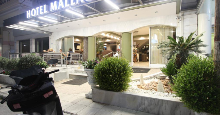 Mallas Hotel este o proprietate de 2 stele situată în Nea Kalikratia (Halkidki) care oferă camere cu vedere la mare, un restaurant, o piscină în aer liber și o terasă cu șezlonguri și umbrele de soare. Proprietatea are servicii de închirieri auto. Se oferă acces gratuit la internet Wi-fi în spațiile publice. Parcarea este posibilă pe stradă, în imediata apropiere a proprietății.