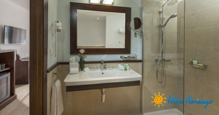 restaurant principal, 6 restaurante a la carte, baruri (la piscina, lobby bar, vitamin bar, night club etc), piscina interioara, piscine exterioare pentru adulti si copii, aquapark cu 12 tobogane cu apa, miniclub (4-12 ani), teenage club (13-16 ani), centru fitness, centru SPA de 1000 mp, sauna, hammam, 2 terenuri de tenis, volei pe plaja, tenis de masa, aerobic, darts, boccia, mini fotbal, cinema (capacitate de 80 pers), 2 sali de conferinta, wireless free.