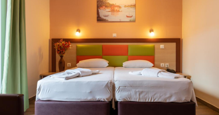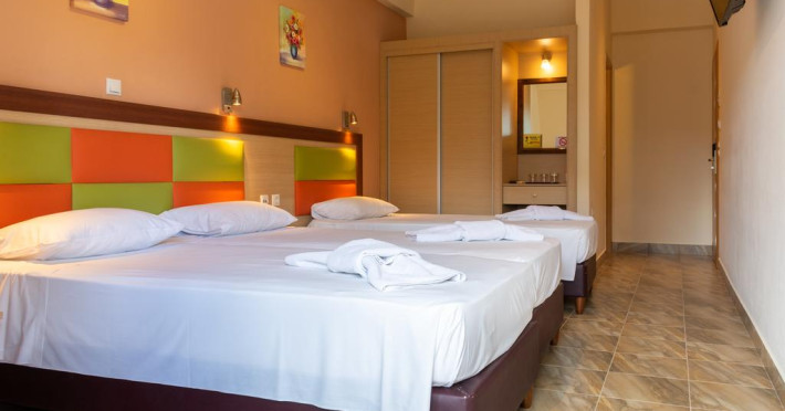 În camere există baie prevăzută cu foehn. Unele camere au balcon, cu vedere la grădină, unde oaspeții se pot relaxa în compania celor dragi. Camerele confortabile de la Maltezos Hotel sunt dotate cu pardoseală de gresie/ marmură, aer condiționat, Tv și seif. Oaspeții au acces gratuit la serviciul Wi-fi în camere. Fiecare unitate de cazare are frigider. Proprietatea oferă camere pentru familie cu o suprafață mai mare și un număr mai mare de paturi față de cele standard.