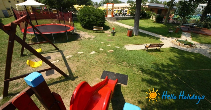 Dotari si servicii : Hotelul detine restaurant, parcare gratuita in limita disponibilului, loc de joaca copii, bar, piscina in aer liber – sezlonguri si umbrele gratuite, 149 camere - 143 camere duble si 6 apartamente, plaja privata – se asigura gratuit 2 sezlonguri si o umbrela doar pentru turistii care au achizitionat pachetul cu all inclusive. Nu se accepta animale de companie.