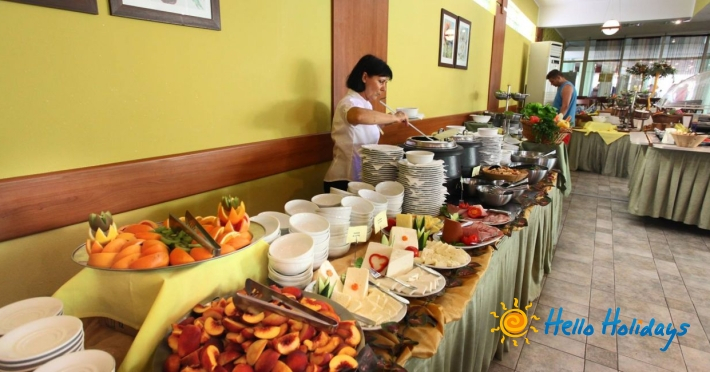 Facilitati masa: restaurantul Petit Jardin 3*, all inclusive: mese servite in restaurant sub forma de bufet, apa, ceai, cafea, racoritoare, aperitive alcoolice, bere, vin (bauturi autohtone). Bar: (09:00-23:00) – apa, cafea, racoritoare, bere (bauturi autohtone). Hotelul isi rezerva dreptul de a decide asupra sortimentelor de bauturi pe care le va oferi turistilor in all inclusive; demipensiune - mic dejun si cina bufet, cu acces la baruri ca la sistemul all inclusive. Turistii au obligativitatea de a purta bratara pe care o vor primi la cazarea in hotel. In lunile mai, iunie si septembrie, masa va fi servita in regim bufet sau a la carte, in functie de numarul turistilor din hotel.