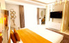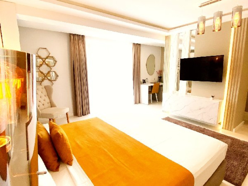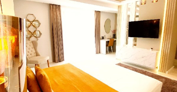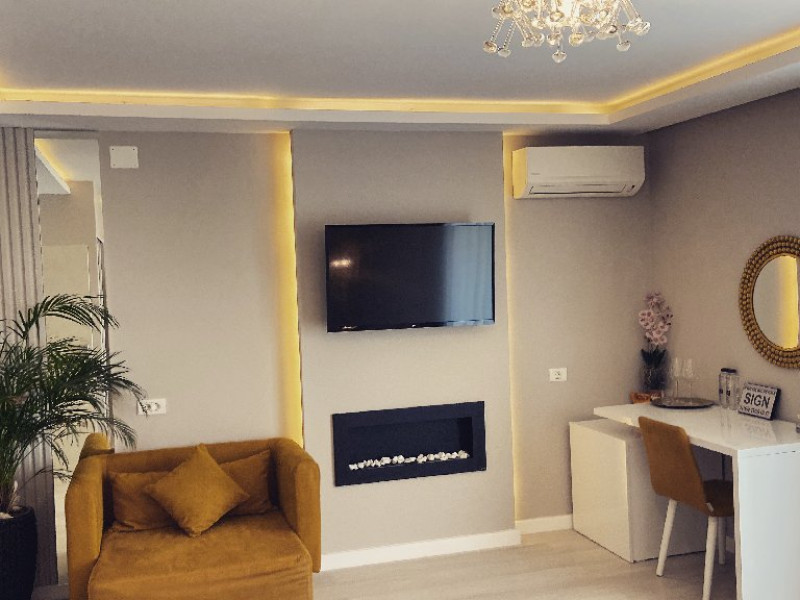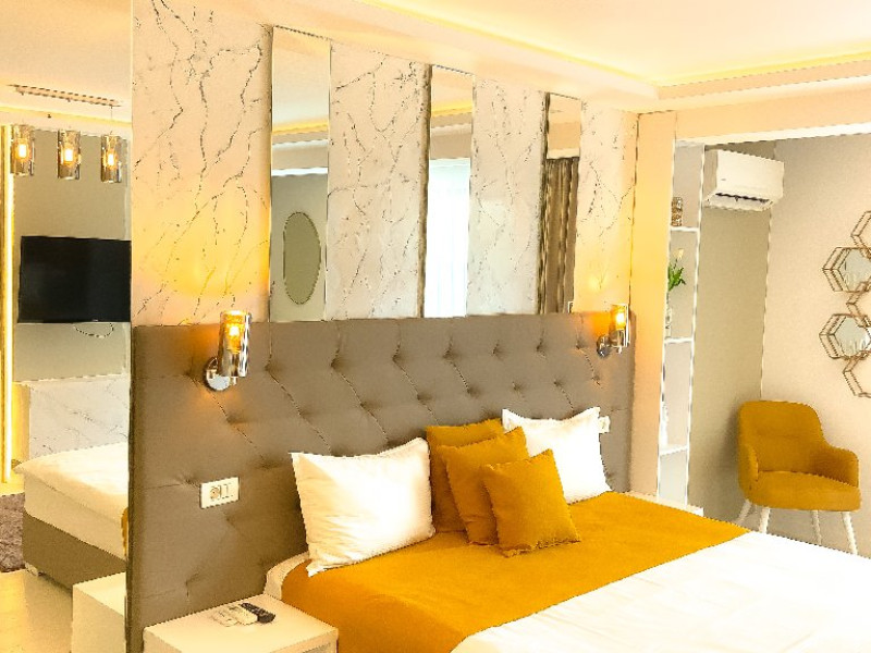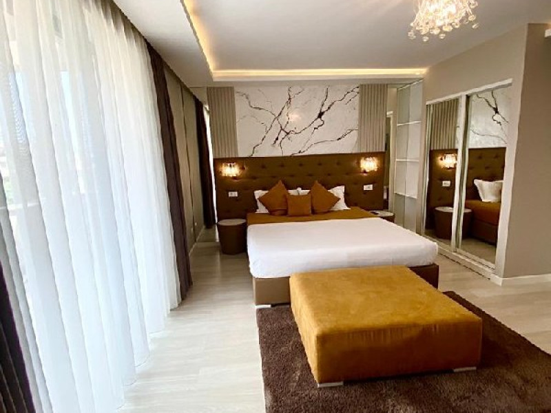 Dotari camere: TV 106 CM LED Smart si Netflix, minibar, uscator de par, pat de 180X200, exista si varianta de a adauga un pat suplimentar (extensibil), pret 30 Lei/ zi, aer conditionat, cosmetice baie.