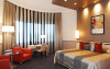Situated on the world heritage Andrassy Street, arguably the citys most beautiful road, and just metres away from Heros Square and its museams. The surrounding area is full of period residential buildings and quiet tree lined streets. Just a short tram ride to the city centre. rooms These spacious en-suite rooms are French provincial in style with yellow painted walls and light peach furnishings. There is wireless internet in each room as well as satellite TV, air-con, minibar and room service is available. There is a writing desk and chair in the room. All rooms have balconies. restaurant A modern stylish restaurant with dark wood floor, long large dining tables and retro chairs. The wide bar at the end of the restaurant has a glass back wall that looks through to the lobby. One of the walls is decorated in retro floral paper. The menu is international and there is a good wine menu. exterior A traditional building just 3 storeys tall. lobby A medium size lobby with high ceilings giving it a nice sense of space. The reception desk is art deco in style with comfortable sofa seating for guests in directly in front and coffee table books for guest to peruse. general A fantastic 5* hotel with a very pleasant outdoor terrace where guests can enjoy a meal or a drink. The rooms are of a good 5* standard and the restaurant is excellent. A peaceful location whilst still being close to many of the cities best attractionsAir conditioning, 24-hour reception, Internet access, WLAN access, Room Service, Laundry Service, Car ParkDatorita dinamicitatii domeniului disponibilitatea ofertelor se modifica de la un moment la altul. De aceea ofertele sunt valabile in limita locurilor disponibile. Agentia nu este responsabila pentru eventualele neconcordante care pot aparea intre informatiile privind tarifele si alte detalii din site si informatiile primite in agentie. In aceste cazuri vor avea prioritate, intotdeauna, informatiile primite in agentie.