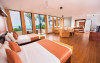 Camerele au aer condiționat și pardoseală din lemn. Acestea sunt dotate cu TV prin satelit, DVD player și minibar.