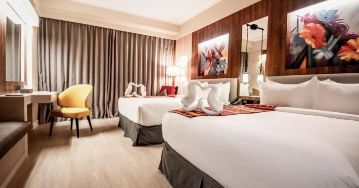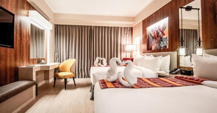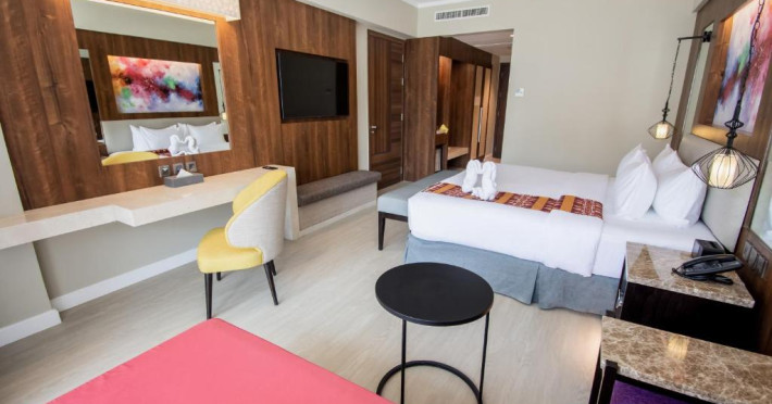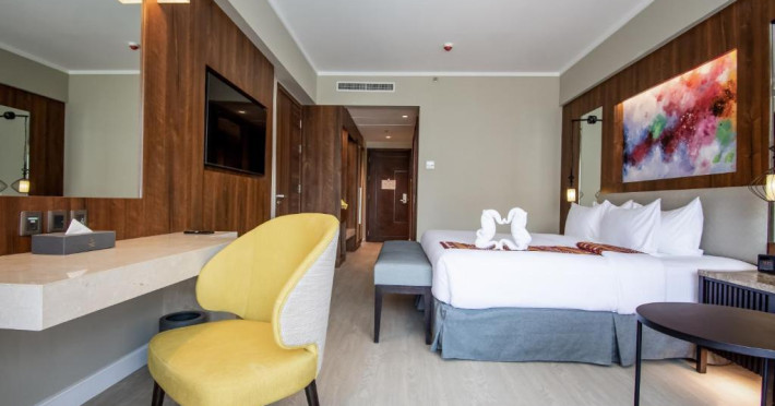 La acest hotel, camerele sunt dotate cu climatizare, o zonă de relaxare, un televizor cu ecran plat cu canale prin cablu, o cutie de valori și o baie proprie cu bideu, articole de toaletă gratuite și un uscător de păr. Baia proprie oferă un duș, papuci de casă și halate de baie. La Mandarin Bay Resort and Spa, camerele oferă lenjerie de pat și prosoape.