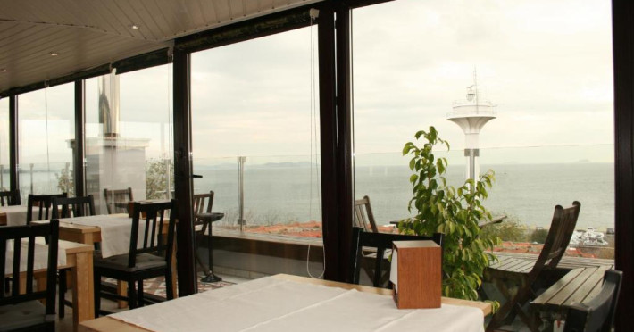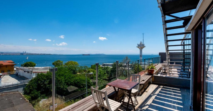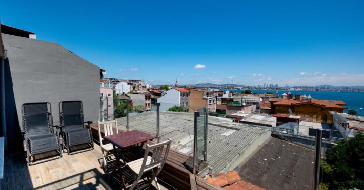 vă puteți relaxa pe terasa plăcută de pe acoperișul pensiunii Mangana Konak și să admirați vederea frumoasă la Bosfor, Insulele Prinților și Moscheea Albas.