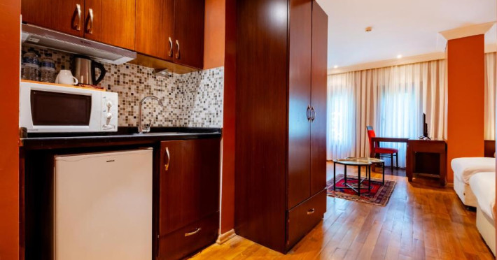Mangana Konak Hotel combină arhitectura tradițională cu suite moderne, in sistem self-catering, pentru un sejur relaxant in orașul vechi Istanbul. Suitele sunt amenajate in tonuri neutre și cu mobilier lucrat manual, pentru o atmosferă intimă. Veți beneficia de acces gratuit la internet wireless și de bucătărie complet utilată.
