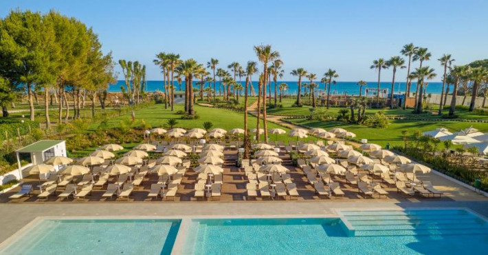 Locație pe malul mării: Mangia's Himera Resort din Palermo oferă o zonă de plajă privată și acces direct la malul mării. Oaspeții se pot relaxa pe piscina infinită sau pe terasa la soare, inconjurată de grădini luxuriante.