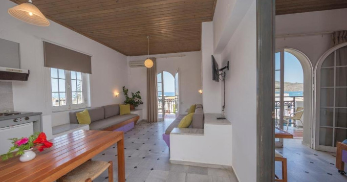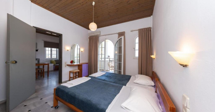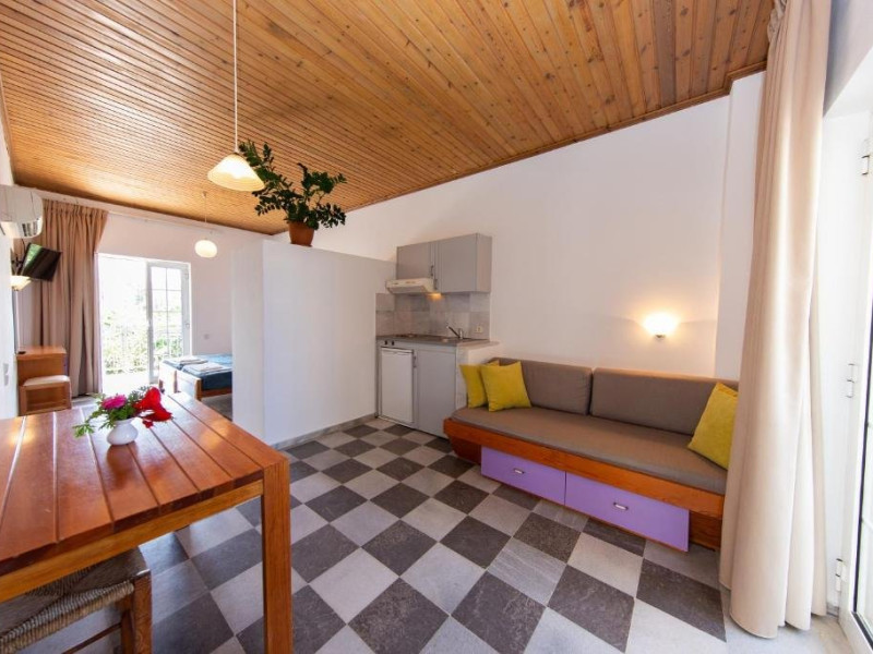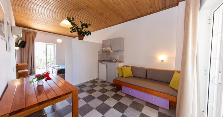 Localizare: la aproximativ 5-10 minute de mers pe jos de plaja din Agia Marina, 9 km de orasul Chania si 20 km de aeroportul din Chania.Dotari camere: aer conditionat (contra cost), televizor, mini bucatarie cu frigider si plita.