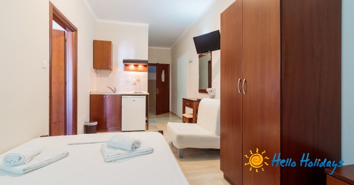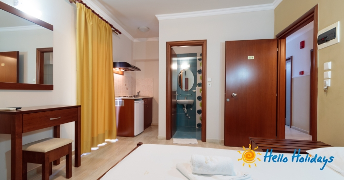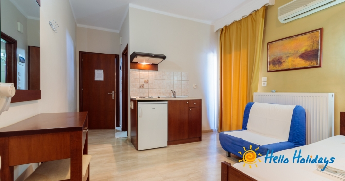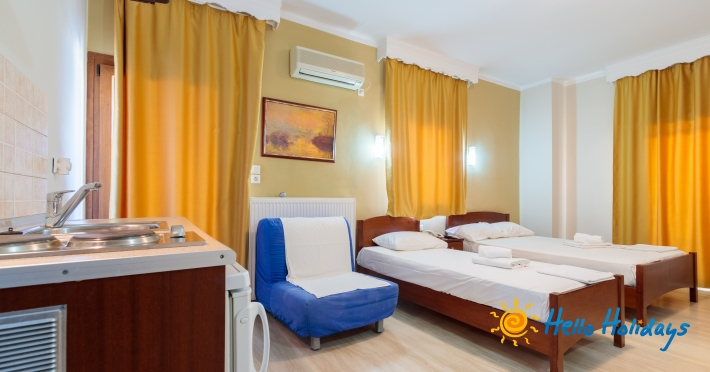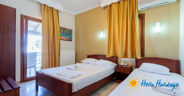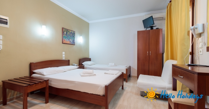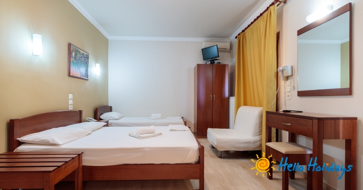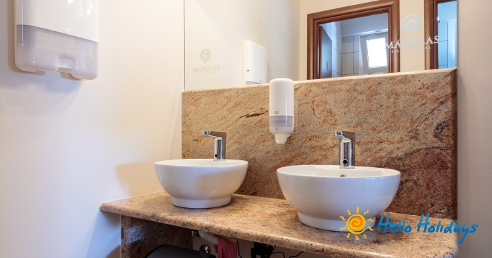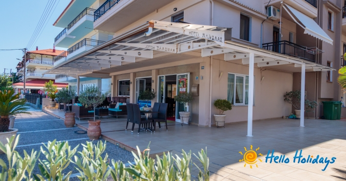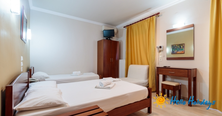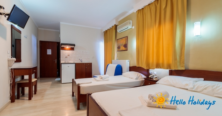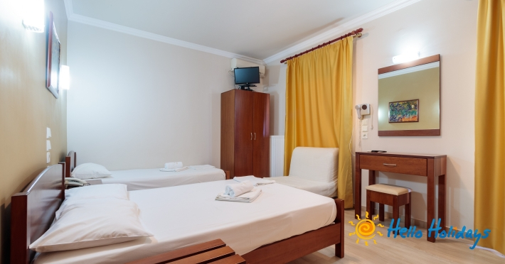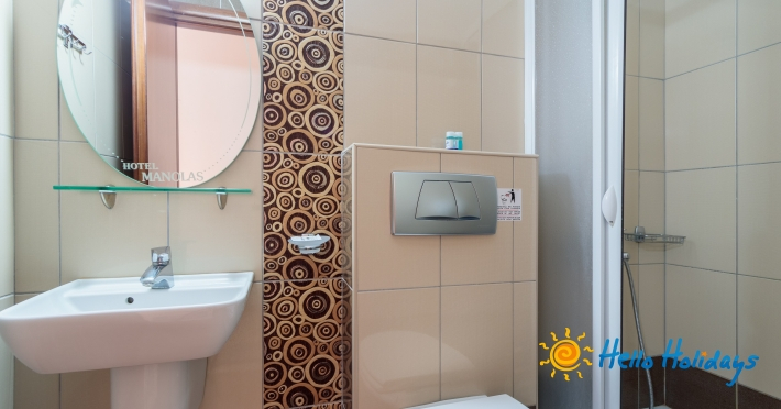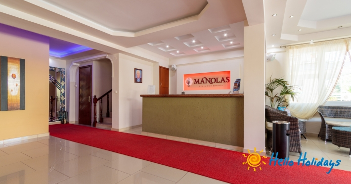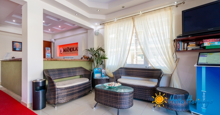 Localizat într-o parte liniştită a staţiunii, la poalele Muntelui Olymp, la o scurtă distanţă de mare, Hotel Manolas, oferă celor ce îi trec pragul, camere curate şi aerisite, fiind preferat de majoritatea turiştilor care aleg Nei Pori ca şi destinaţie de vacanţă.Facilitati Camere