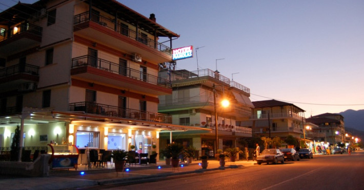 Localizat într-o parte liniştită a staţiunii, la poalele Muntelui Olymp, la o scurtă distanţă de mare, Hotel Manolas, oferă celor ce îi trec pragul, camere curate şi aerisite, fiind preferat de majoritatea turiştilor care aleg Nei Pori ca şi destinaţie de vacanţă.Localizare