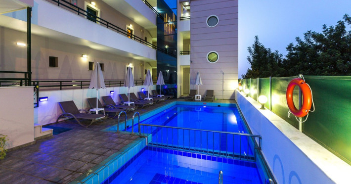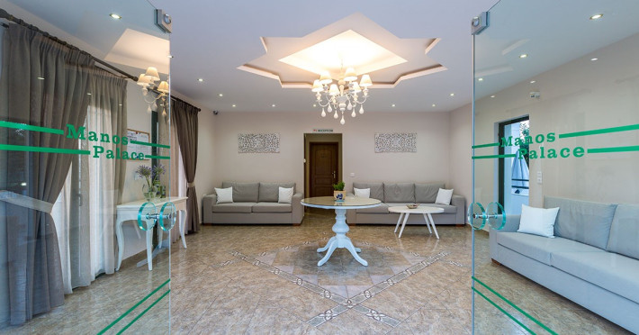 The hotel consists of 10 apartments and 9 studios, which are designed with a modern style and are fully furnished. All rooms come with a tv, air-condition, wifi internet, refrigerator and a fully equipped kitchen. The guests can have access to all the floors and the roof garden using an external elevator. There is parking space for all the guests.Even though the complex is located close to the most beautiful beach in Bali, there is a swimming pool with a separate children's section with sunbeds and umbrellas were the guests can relax and enjoy the Cretan sun.On the upper floor, guests of Manos Palace can enjoy at the roof garden their breakfast and coffee, refreshments and ice creams all day, while enjoying the remarkable views over the Cretan sea.