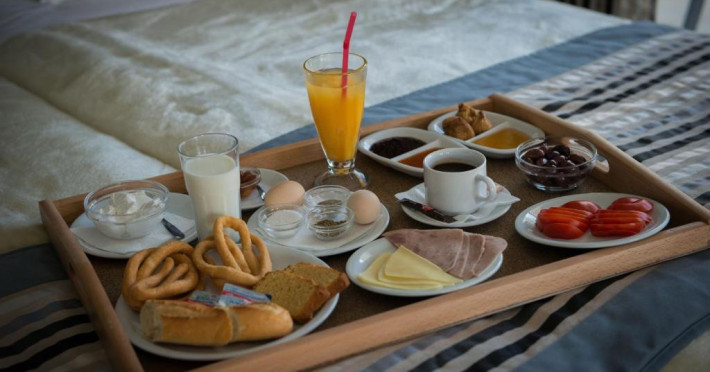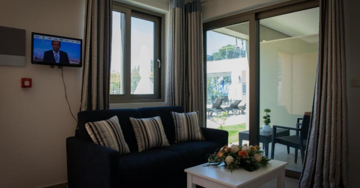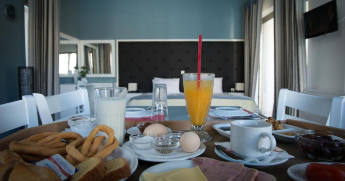 Micul dejun grecesc, inclusiv suc de portocale și gemuri, este servit in camere. Mese ușoare și băuturi sunt servite la snack bar. Șezlonguri și umbrele pot fi găsite la barul de pe plajă in timpul sezonului estival.