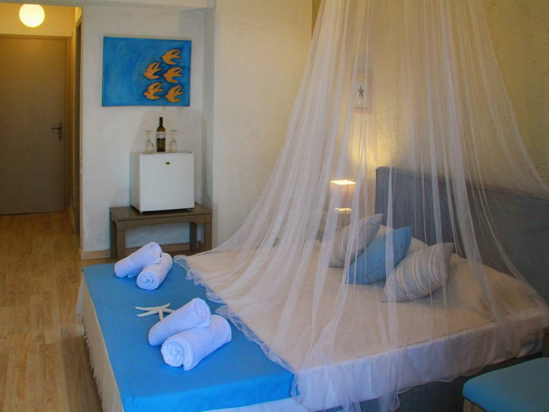 HOTEL MARAGAKIS dispune de 54 de camere orientate spre mare sau gradina si dotate cu aer conditionat (~ 7 EUR/zi), frigider, televizor, telefon, radio, acces WiFi gratuit.