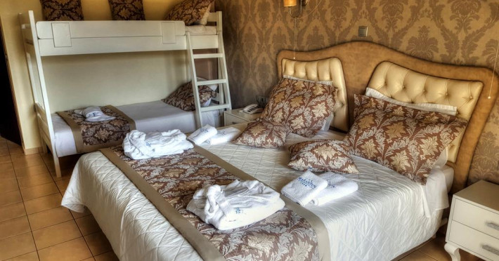 O piscină principală și o piscină pentru copii sunt la dispoziția clienților, precum și un bar la piscină, unde se pot bucura de băuturi răcoritoare, gustări sau mese ușoare pe tot parcursul zilei. Utilizarea sezlongurilor la piscina si plaja este gratuita. Bufetele în restaurantul principal sunt inspirate din bucătăria grecească și o atenție deosebită se acordă calitatii ingredientelor. Clientii se pot menține în formă vizitand sala de sport complet echipată a hotelului și sauna. Camerele eco diferă de celelalte tipuri printr-un mobilier si decoratiuni mai vechi, toate aceste camere fiind un pic sub nivelul parterului.Datorita dinamicitatii domeniului disponibilitatea ofertelor se modifica de la un moment la altul. De aceea ofertele sunt valabile in limita locurilor disponibile. Agentia nu este responsabila pentru eventualele neconcordante care pot aparea intre informatiile privind tarifele si alte detalii din site si informatiile primite in agentie. In aceste cazuri vor avea prioritate, intotdeauna, informatiile primite in agentie.