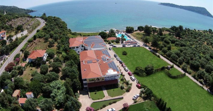 Hotelul Maraton Beach, este situat in partea de est a insulei Thassos, la 20 metri de mare, in Kinira, a doar 4 km distanta de plaja Paradise si 8 km de Skala Potamia si Golden Beach. Proprietatea este situata la 10 minute de mers pe jos de centrul orasului. Oaspetii se vor bucura de vederi panoramice la Marea Traciei si de un acces usor la un port de feriboturi.