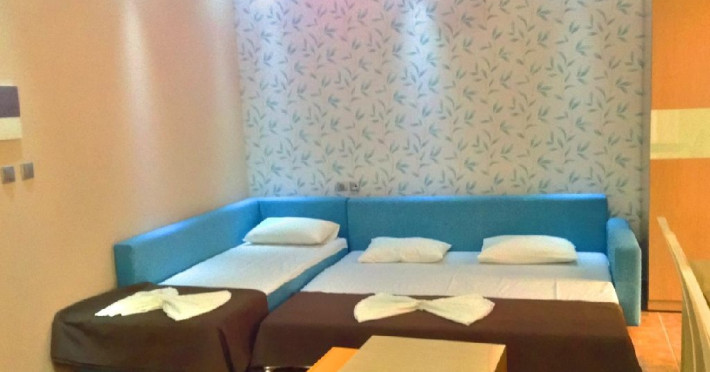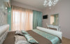 Suita Superior: 50 m2: dormitor cu pat matrimonial si living cu canapea extensibila, vedere laterala la mare sau vedere frontala la mare