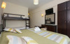 Camera Superior cu pat supraetajat: 32 m2: pat matrimonial si pat supratetajat: halat si papuci de baie, vedere laterala la mare