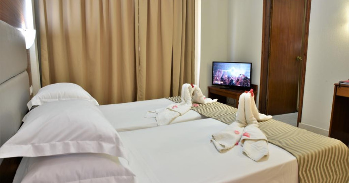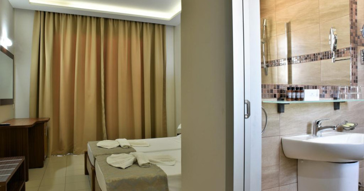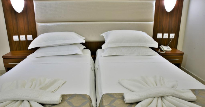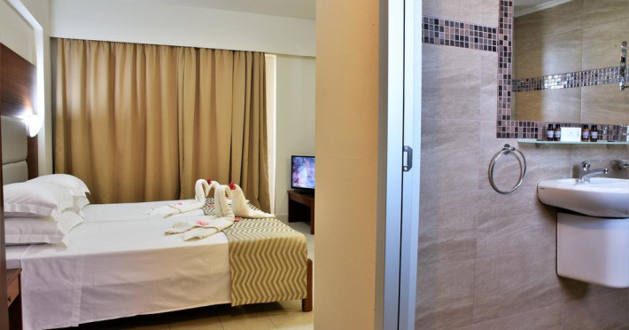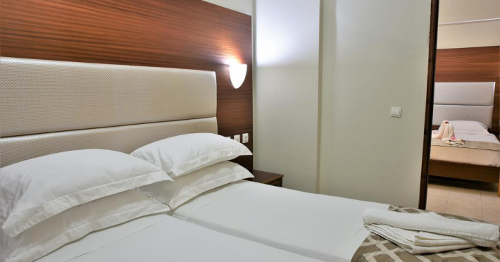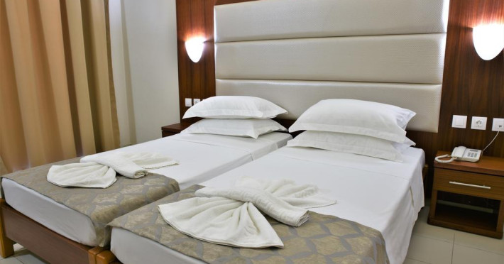 Sunt disponibile 140 camere. Camerele de la Marathon sunt dotate cu aer condiționat, Tv cu canale prin satelit și seif. În camere există baie cu cadă sau duș ce are în dotare foehn și articole de toaletă gratuite. Fiecare cameră dispune de cană-fierbător. Camerele au balcon cu masă și scaune unde pot fi petrecute momente de relaxare. Oaspeții au acces gratuit la serviciul Wi-fi în camere. Curățenia in cameră se face zilnic. Fiecare unitate de cazare are frigider. Proprietatea oferă camere pentru familie cu o suprafață mai mare și un număr mai mare de paturi față de cele standard.