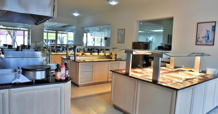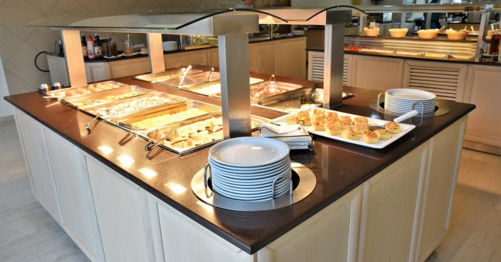 La Marathon oaspeții au la dispoziție un restaurant care servește mâncare în stil bufet. Preparate din bucătăria internațională așteaptă să fie degustate în fiecare zi la micul dejun, prânz și cină. Masa poate fi servită atât în interior, cît si în aer liber, pe terasă, în funcție de vreme. Oaspeţii pot avea diverse băuturi răcoritoare sau alcoolice la bar.