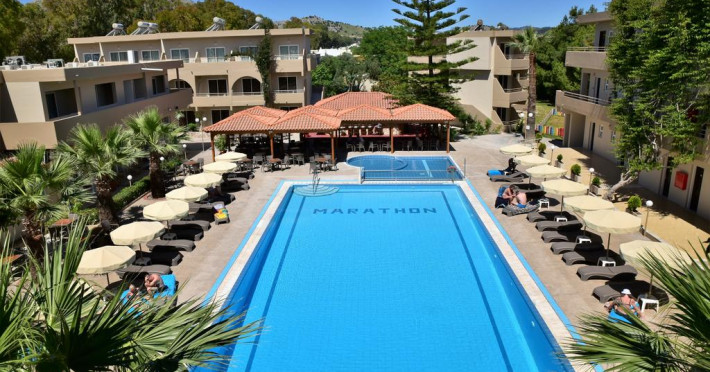Amplasată în Kolymbia (Rhodos), la 300 m de plaja Afandou, Marathon este o proprietate de 3 stele care oferă o piscină în aer liber, terasă cu șezlonguri și umbrele de soare și unități de cazare cu aer condiționat. Pentru petrecerea timpului liber oaspeții au la dispoziție activități de agrement pe timpul zilei și programe de divertisment seara. Proprietatea are servicii de recepție cu program non - stop și închirieri auto. Se oferă acces gratuit la internet Wi-fi în spațiile publice. Parcarea este disponibilă la proprietate gratuit.