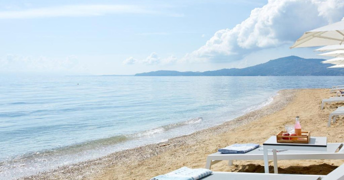 Camerele și suitele, decorate in tonuri naturale specifice arhitecturii cicladice, imbină eleganta cu confortul modern. Piscina infinity cu șezlonguri și baldachine private creează cadrul perfect pentru momente de relaxare sub soarele grecesc.