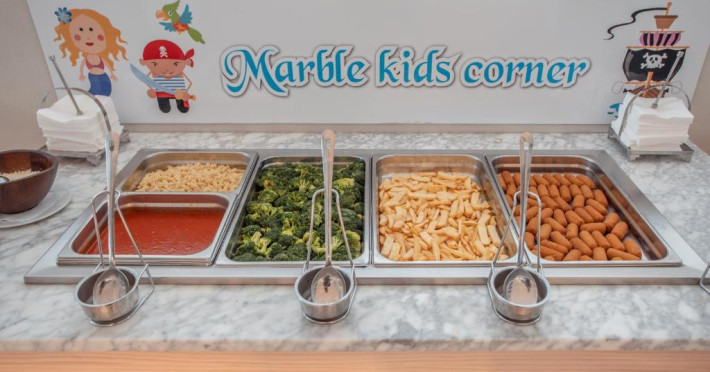 Marble Stella Maris are clădiri albe mici, inconjurate de grădini. Toate camerele au aer condiționat, TV cu ecran plat și frigider. Unele camere au balcon/terasa cu vedere la mare/gradina.