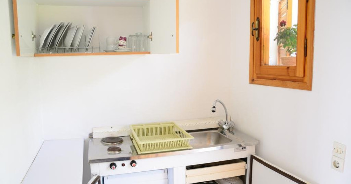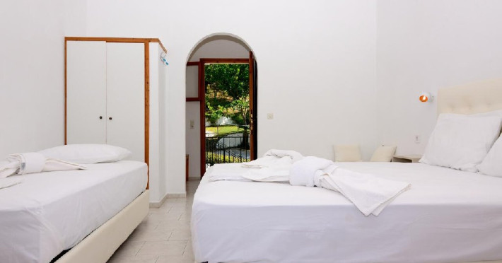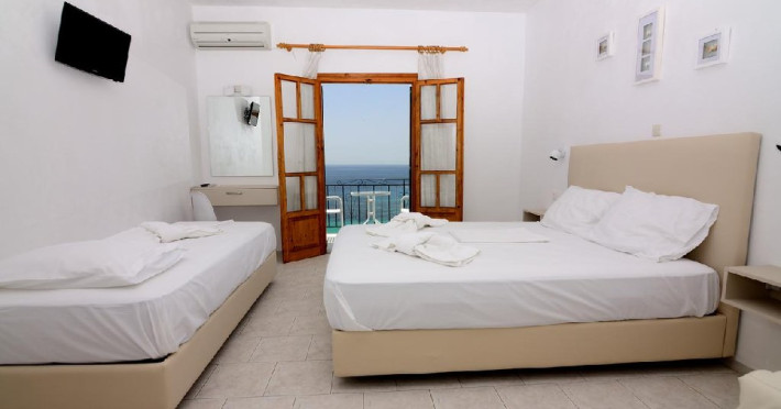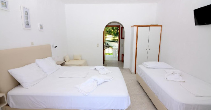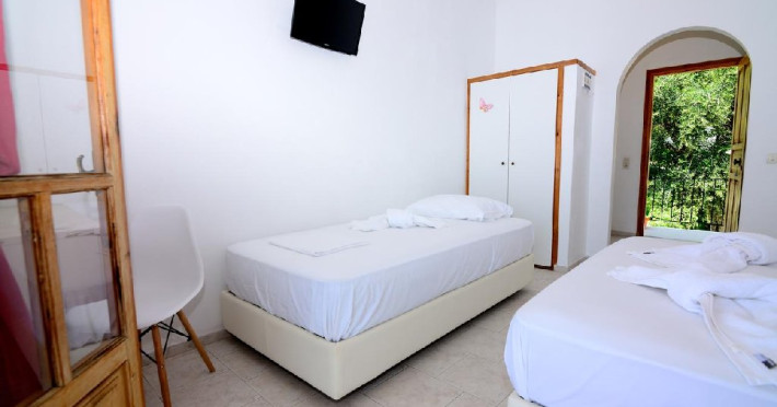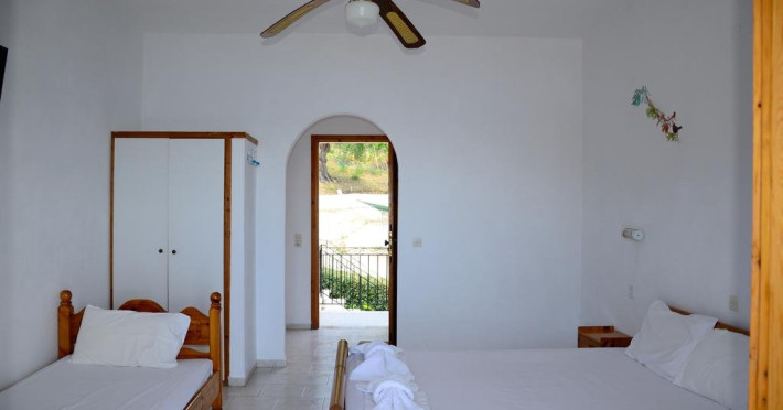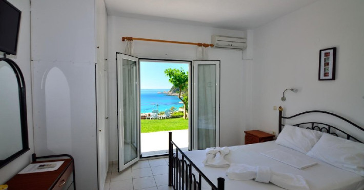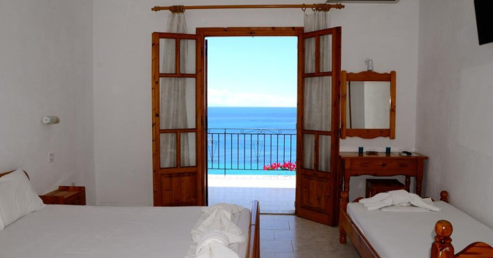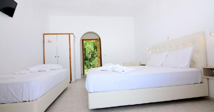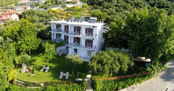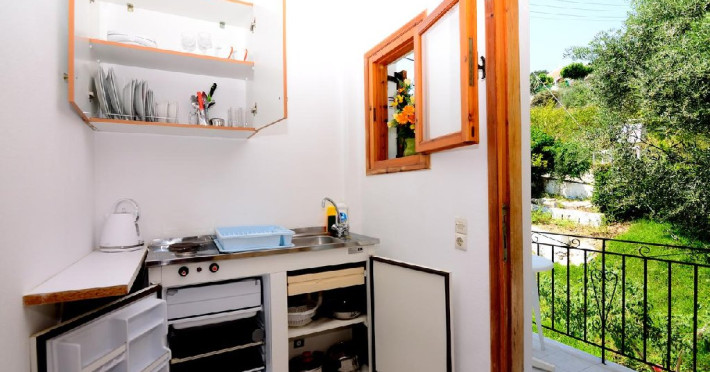 Facilitati camere: Cele 10 studiouri si 1 apartament sunt prevazute cu AC, TV, internet Wi-Fi, frigider, chicineta, uscator de par, baie cu dus, balcon cu vedere la marea Ionica sau la gradina plina de flori.