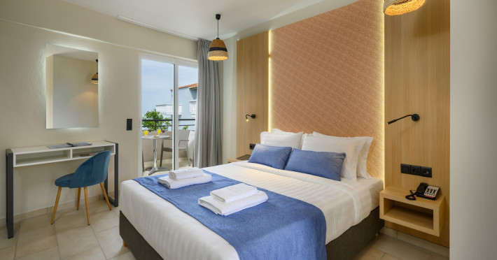 Mare Boutique is by the sea and mostly of the rooms have sea view. The hotel is located at the sandy beach of Georgioupolis, an area with different shopping choices, restaurants, coffees ect.