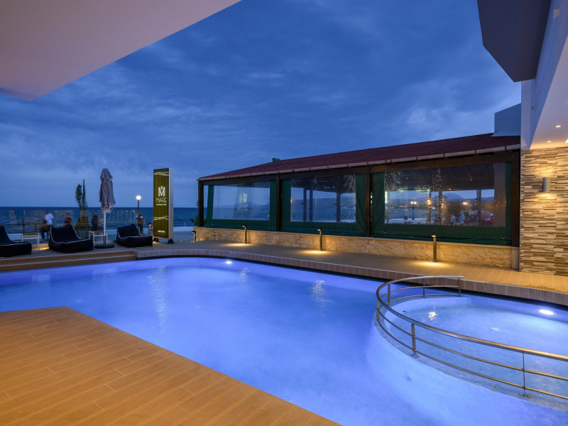 Mare Boutique consists of 39 rooms which are well equipped all rooms offer the guests relaxation in comfort. All rooms come with a mini-fridge, air conditioning, satellite TV, shower, WC, hairdryer, safe (extra charge) and a balcony.Mare Boutique has a pool with sea water ,a pool bar& a main restaurant. Sunbeds and umbrellas for free around the swimming pool and the beach.The hotel is 42km away from the Airport of Chania, 90 km away from the Airport of Heraklion and 25km from the Town of Rethymnon.