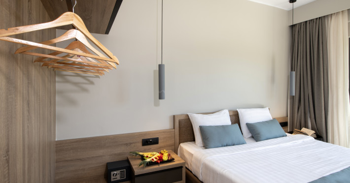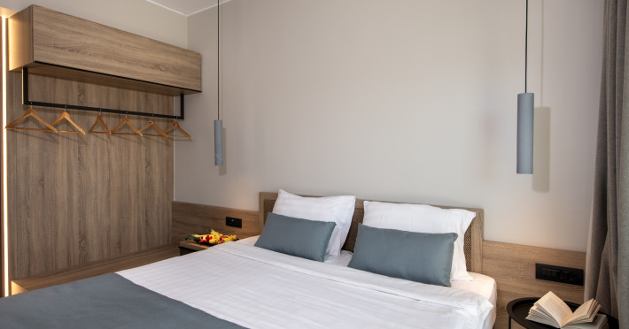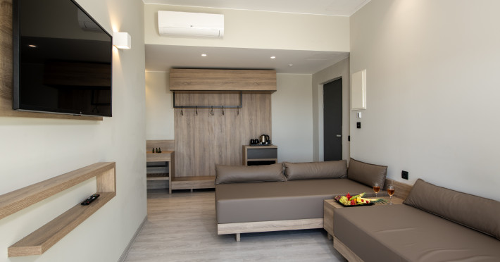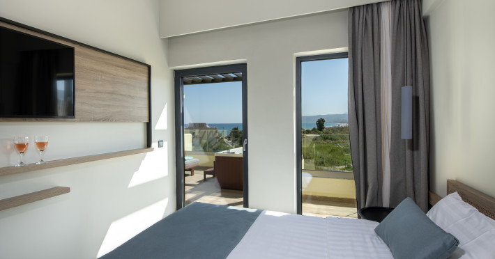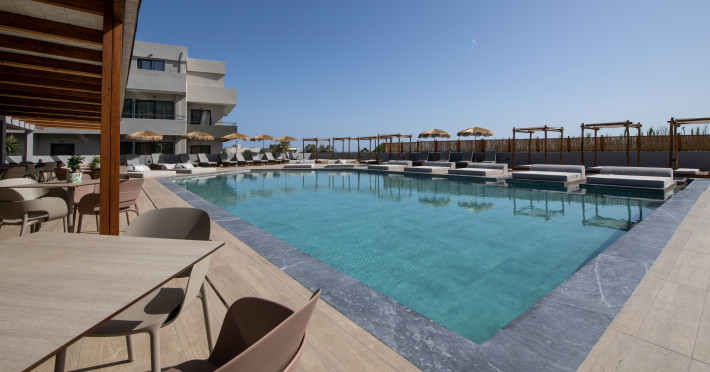 Mare Garden features 40 rooms and offers the following amenities: a main swimming pool, an indoor pool, a pool bar at the main building, a main restaurant (NEORIO - 50 meters from the main building), a beach area 150 m away with beach towels available at the reception with a deposit. Reception is available 24 hours a day. Sunbeds and umbrellas at the beach are available for an extra charge.