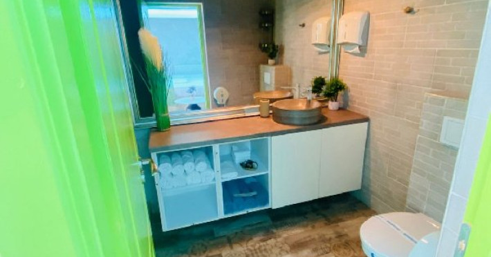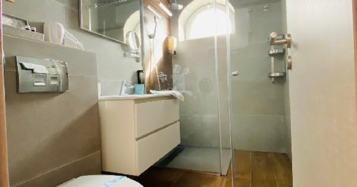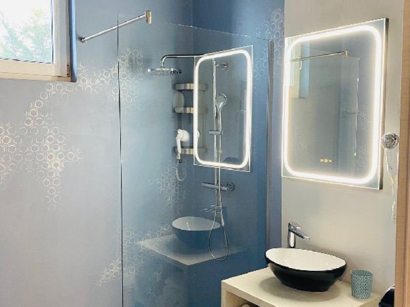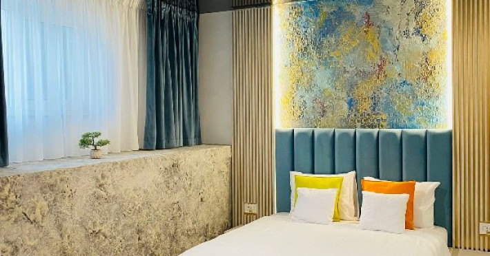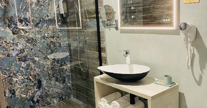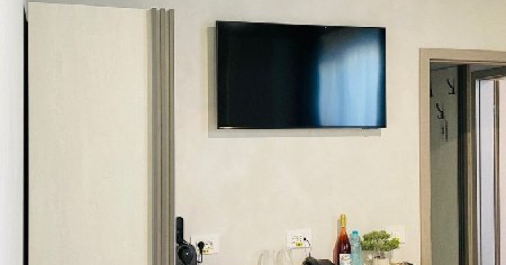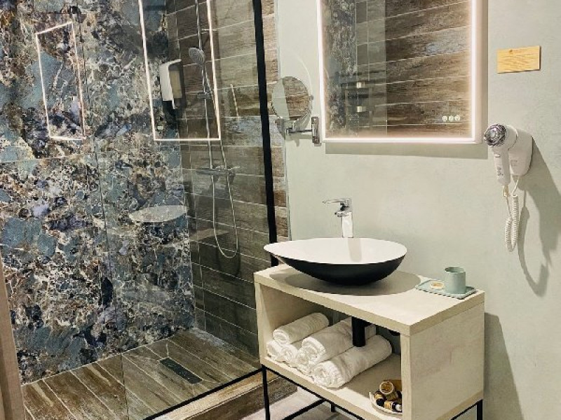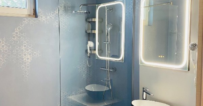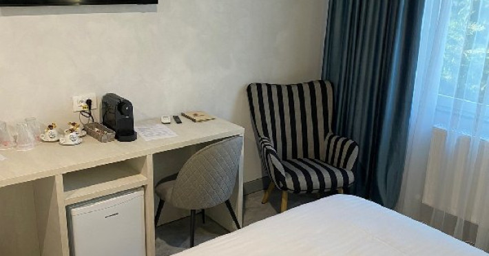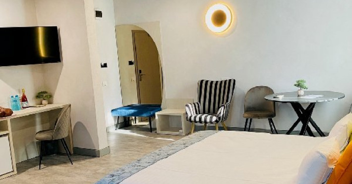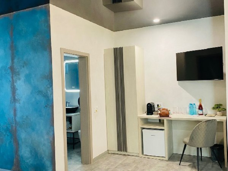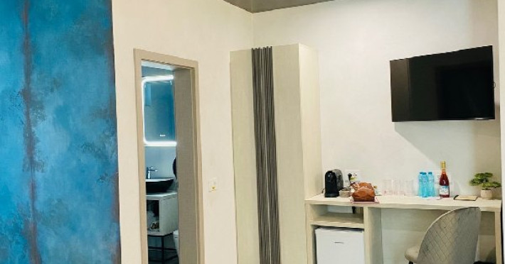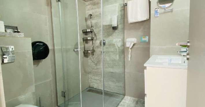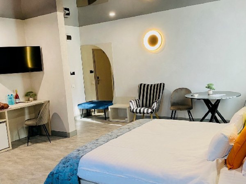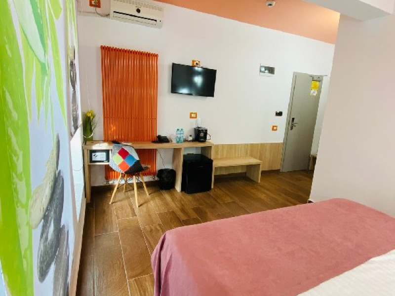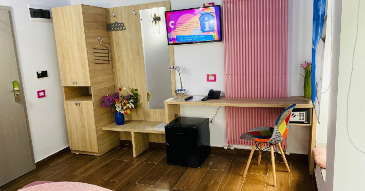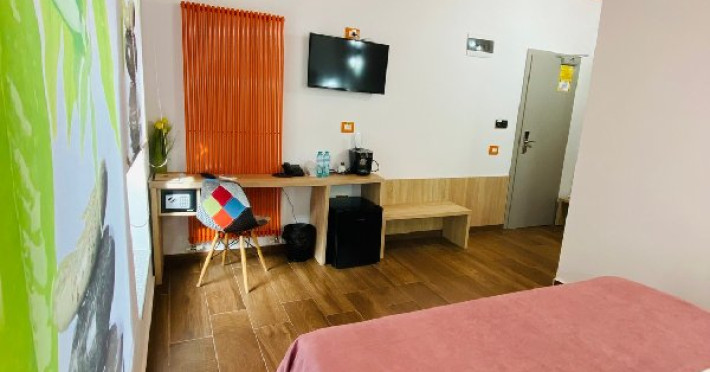 SINGLE EXECUTIVE: Corp nou, construit in 2020, mobilier modern, pat Queen (160 x 200 cm), Samsung Smart TV + Netflix, produse cosmetice EcoNatural, oglinda de machiaj si uscator de par, seif, aer conditionat, minibar, prosoape de plaja gratuite, espressor Caffisimo.